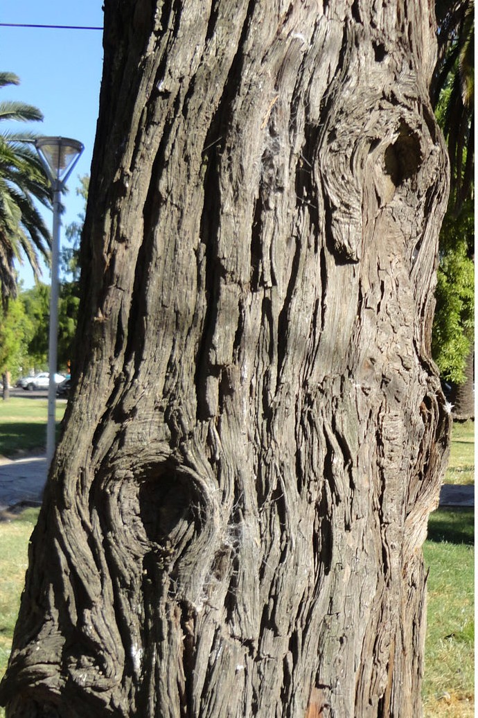 Color marrón rojiza, lisa y se resquebraja con la edad.