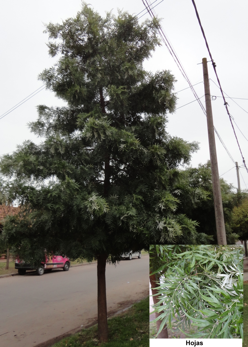 Árbol de gran porte. Copa alargada más o menos cónica.