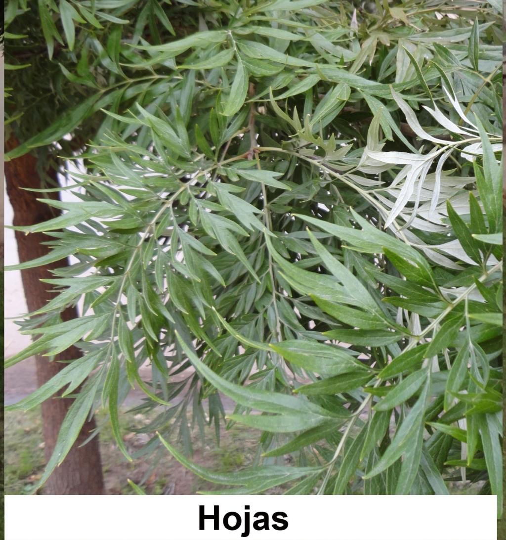 Grandes, coriáceas, con la lámina dividida, haz color verde oscuro brillante y glabro (sin pelos), envés de color verde claro plateado con pelos sedosos y con el nervio medio resaltado.