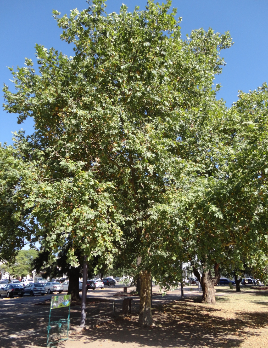 Es un híbrido entre Platanus orientalis del sudeste de Europa y Asia occidental y Platanus occidentalis de América boreal.