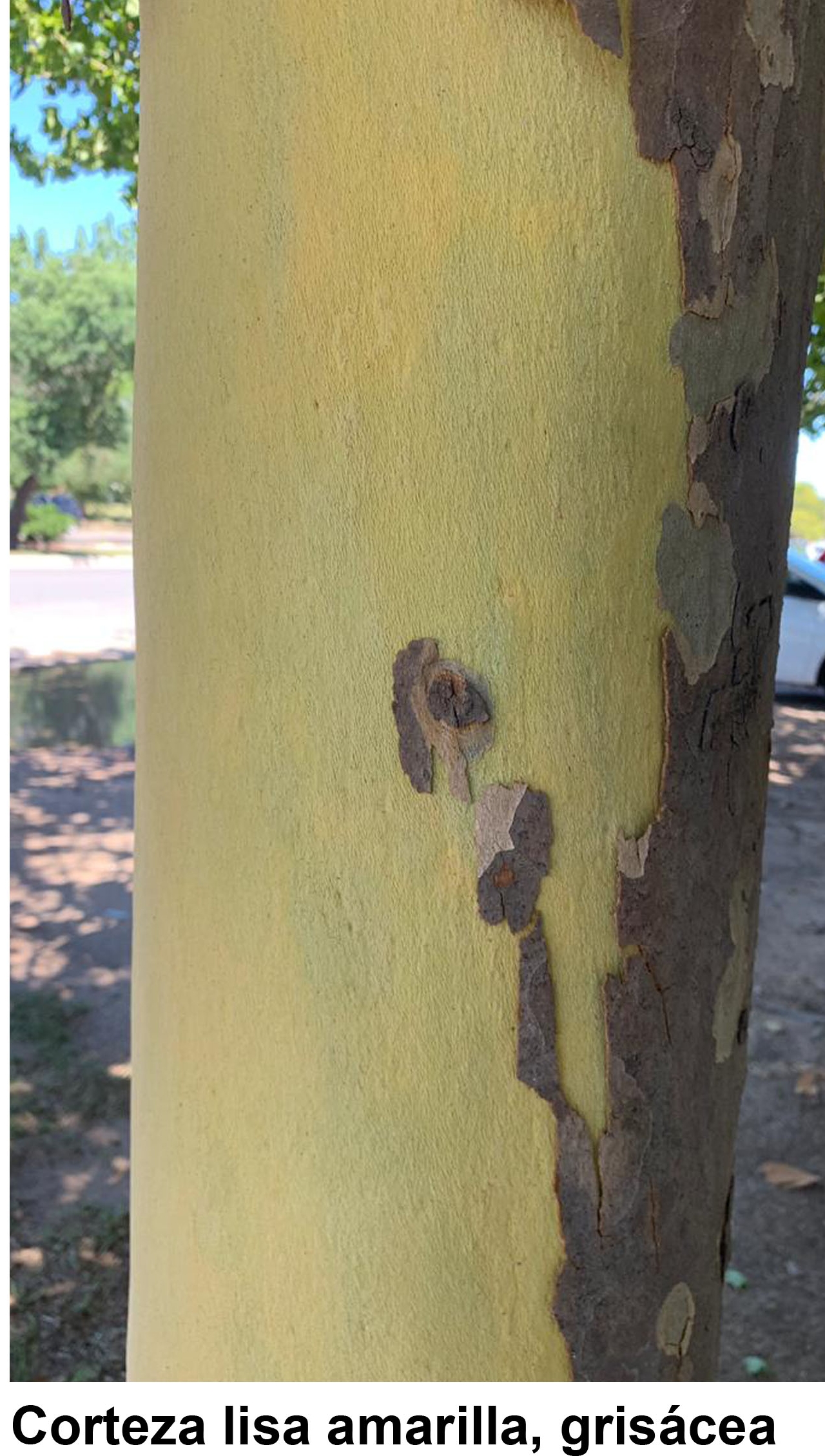 Lisa, verde-amarillenta, que se desprende en escamas y le confiere un aspecto muy vistoso.