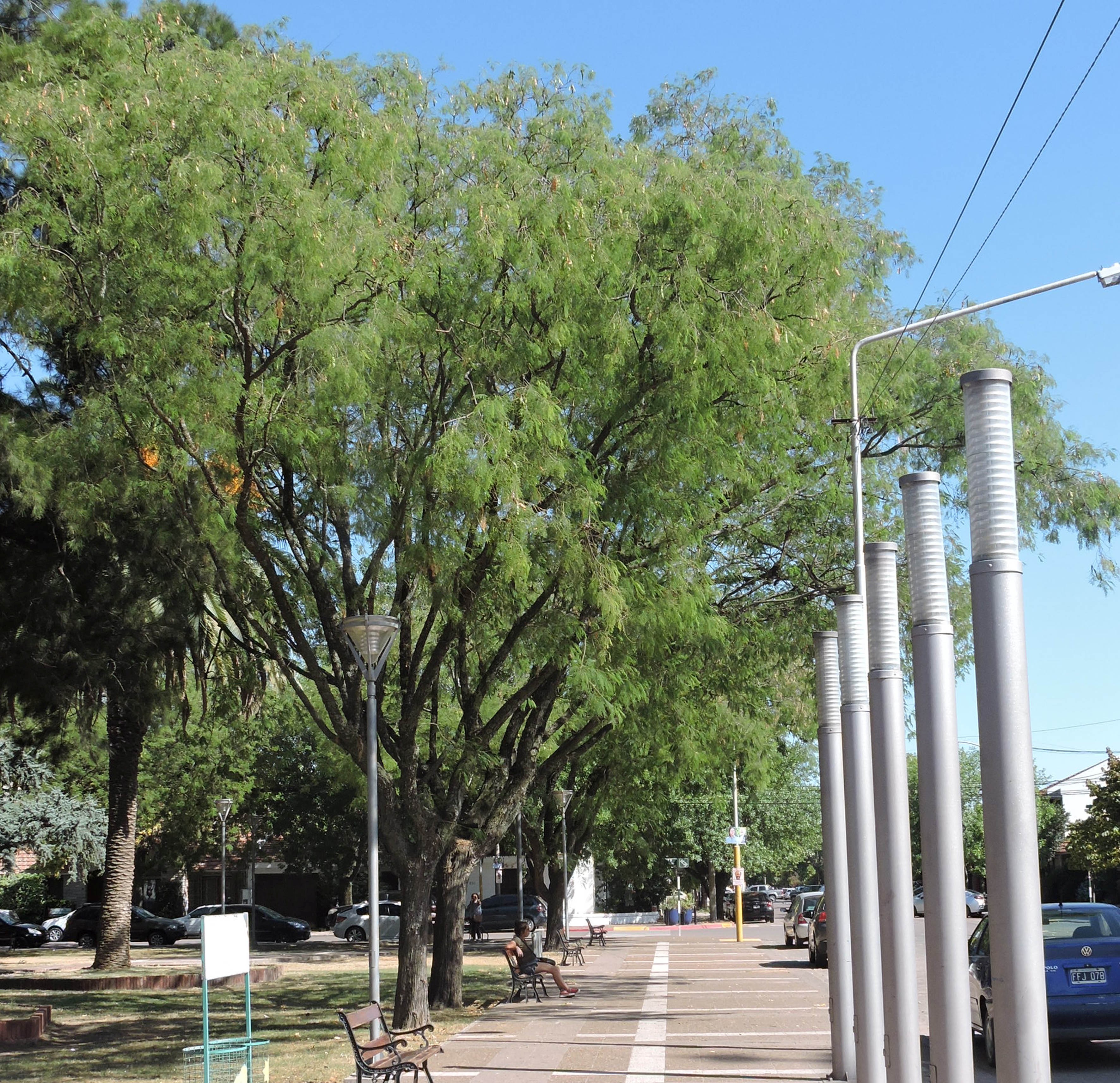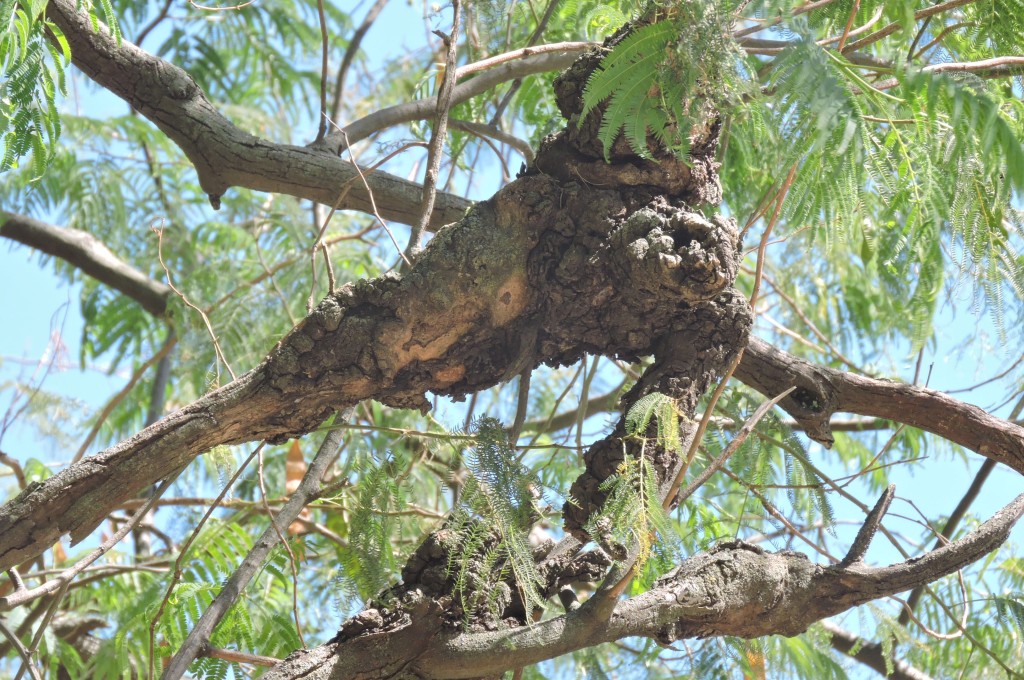 es la acacia nativa más grande de Argentina. Especie muy melífera. En la Plaza San Martín de General Pico hay 9 ejemplares. Las formaciones anormales (tumores) en las ramas son causadas por el hongo Ravenelia papilosa.
